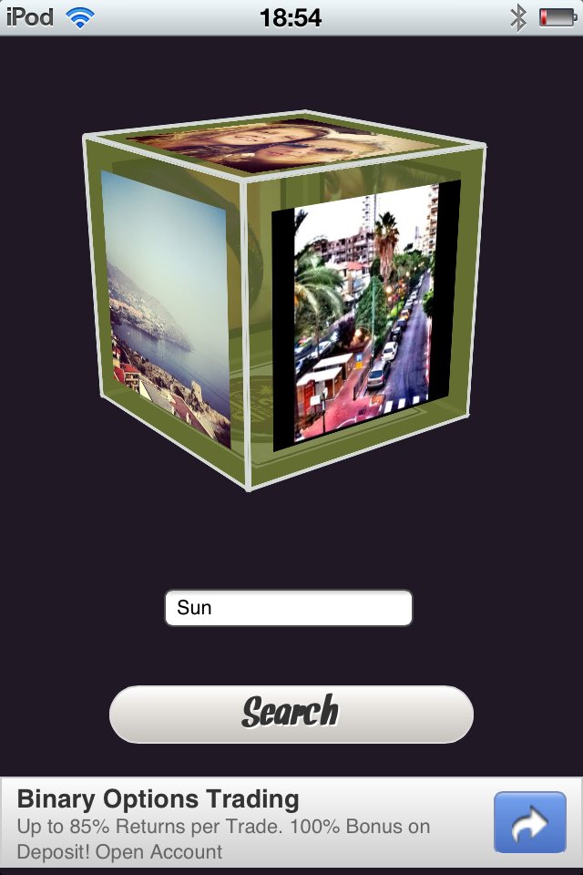 <p>Displays the 6 latest images in a 3D cube when a user searches for a hashtag. Tap on a photo to go to Instagram. </p>