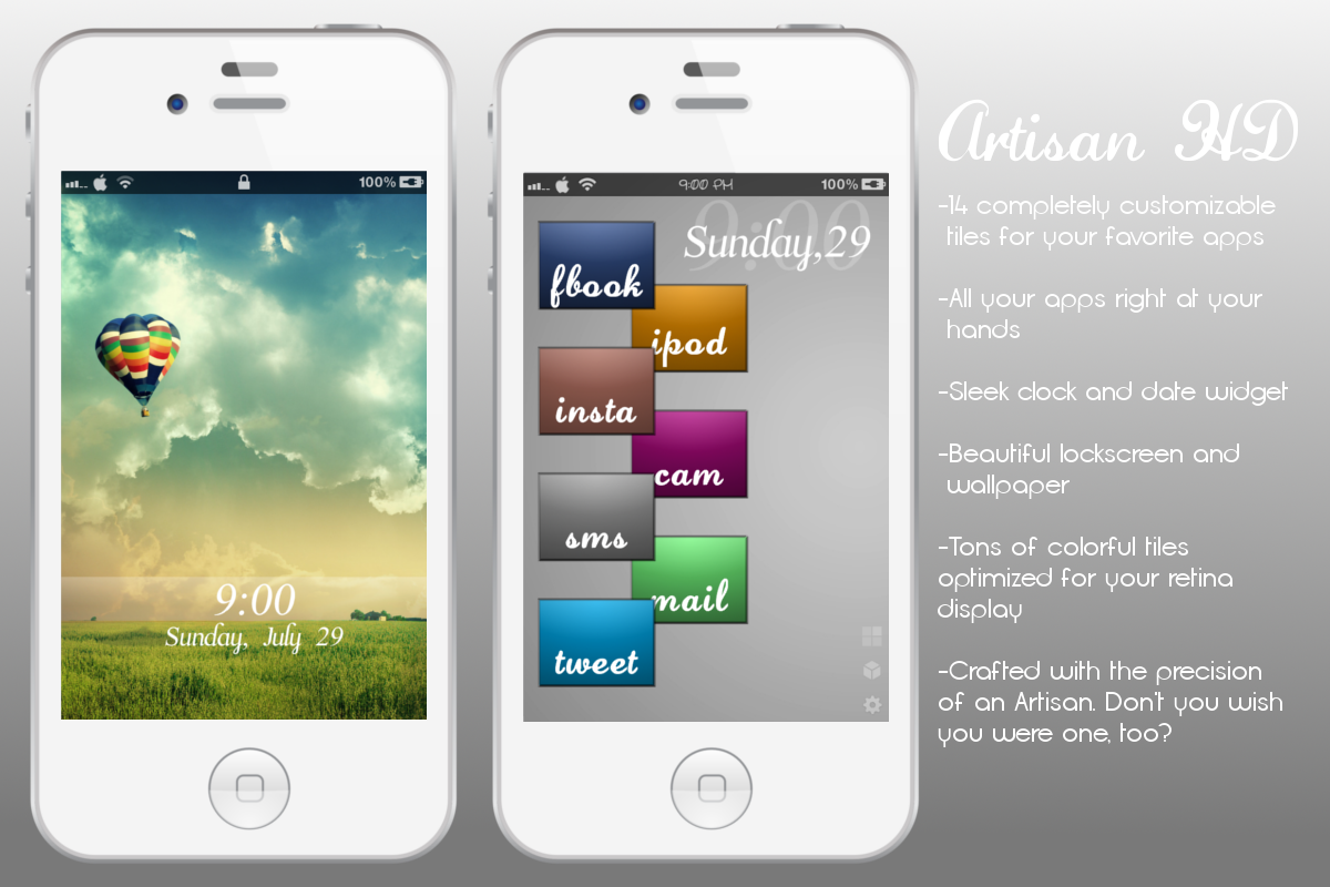 Artisan HD was crafted with the precision of an artisan. From the colorful, vibrant tiles, to the gorgeous image of an amazing lockscreen, this theme brings a uniquely beautiful look to your iDevice.