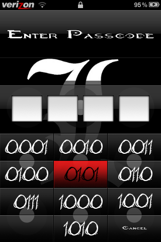 <p>An unlock keypad featuring Binary numbers.</p>