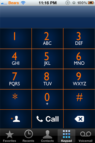 <p>This is a Blue and Orange color dialer for the phone app. Currently running on iOS 5.0.1 but assuming it works on lower softwares.</p>