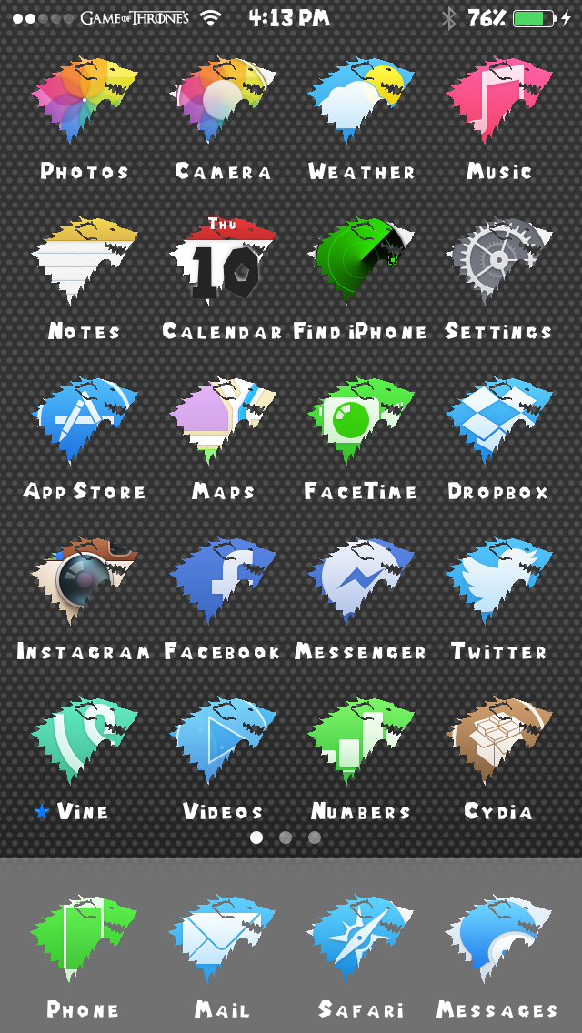 <p>I just love Game of Thrones! I figured you guys would enjoy these themes as well! Please note that this package includes custom sliders for both JellyLock (which you'll need to download "JellyLock7" to use) and the default iOS7 Slider. P.S. Donations are greatly appreciated as I put a ton of time into these themes to make them amazing.</p>