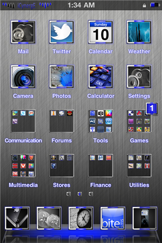 -Stock Apps (Calculator, Calendar, Camera, Photos, Phone, SMS, Weather, Compass, Mobiletimer, Safari, iPod, Compass, and Notes with more to come)