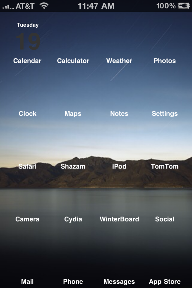 Tired of "Clear Icon" themes not working for your iPhone 4? I put together one that utilizes the set wallpaper function of the phone. App Store icons are auto-themed. I have included the .png files and instructions to get rid of the "Wallpaper Shadow" if you know how to use SSH. Any Icons that don't theme use ThemeIconMaker from Cydia. Follow @ClearIconThemes on Twitter for suggestions and questions. Thank You and Enjoy!