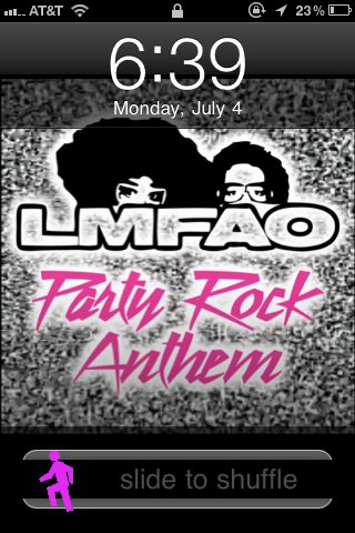 This is an LMFAO theme for all of the shufflers out there. This theme comes with custom icons, custom sliders, unlock text that says "slide to shuffle", and an unlock sound that says "shake that". Please email me for requests, suggestions, or comment-jklingensmith24@gmail.com