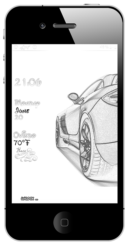 Nice lockscreen with weather, clock and date widget with a drawn wallpaper.