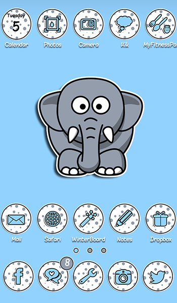 <p>It includes icons, page indicators, badges, folders, folder backgrounds and a SMS chat kit.</p>