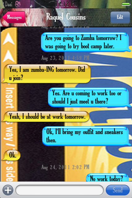 Metrocard SMS from the NYC Subway. Yellow and blue chat bubbles.