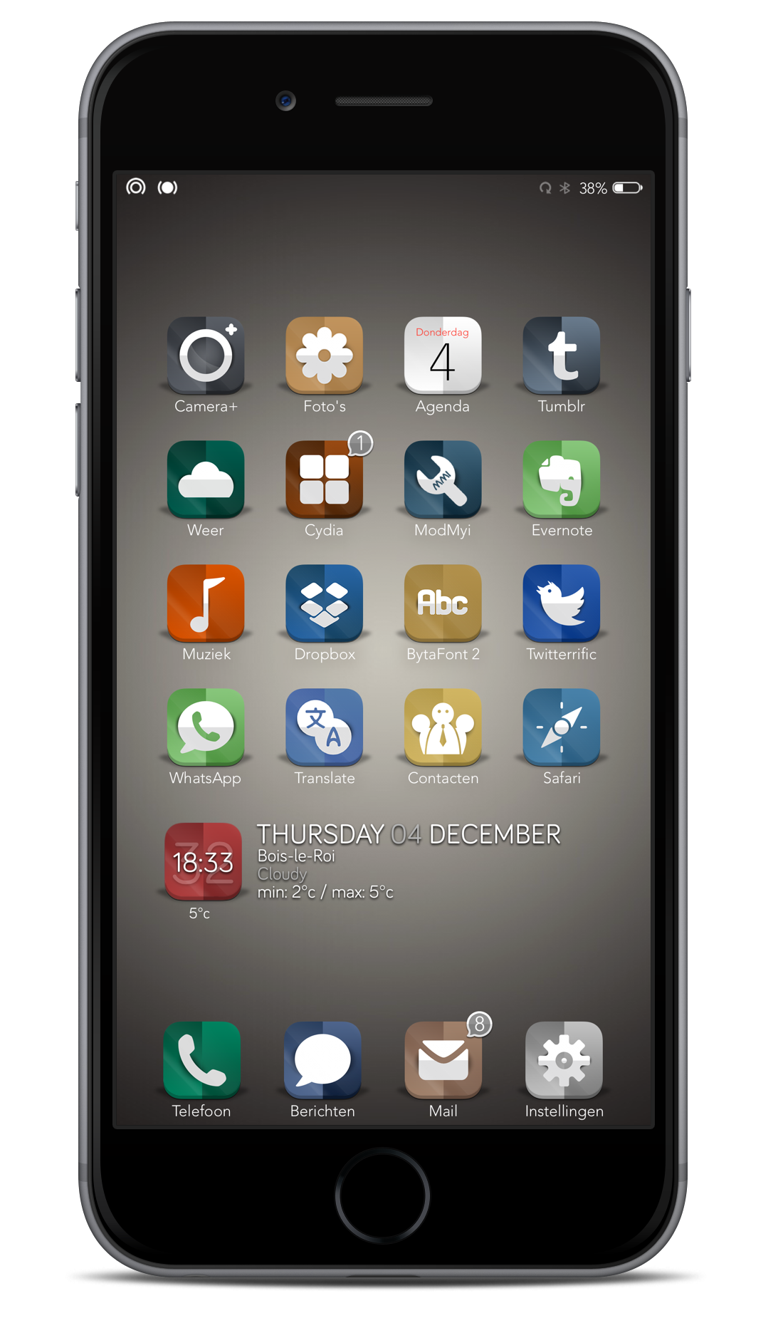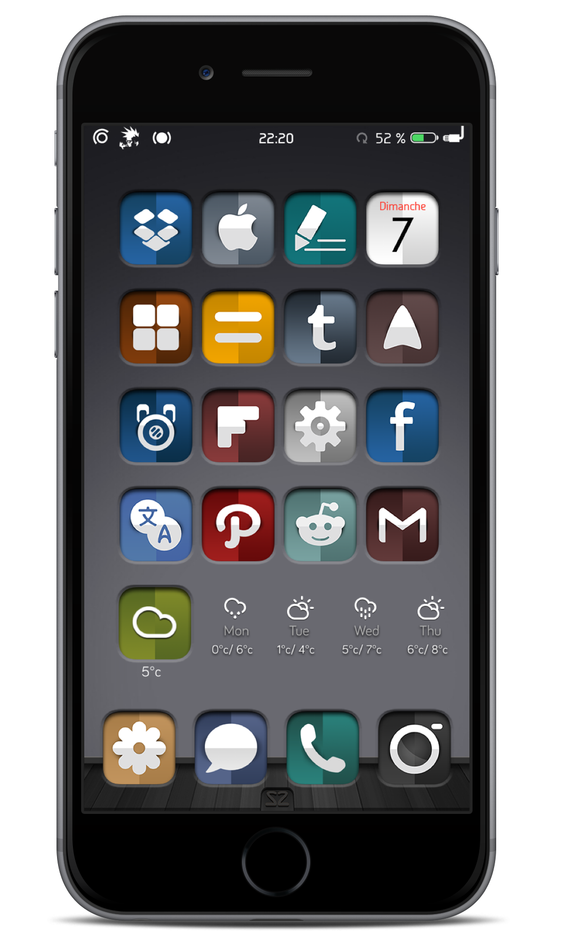 <p align="center">- Applications UI (Store, Cydia, Timer, Phone)<br /> - Statut bar UI<br /> - Control Center UI<br /> - Phone Dialer and Lockscreen Keypad<br /> - 7 iconOmatic (2 news)</p>