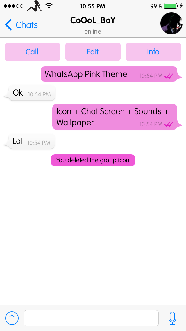 <p><a href="cydia://package/com.modmyi.whatsapppinktheme">WhatsApp Pink Theme</a></p>